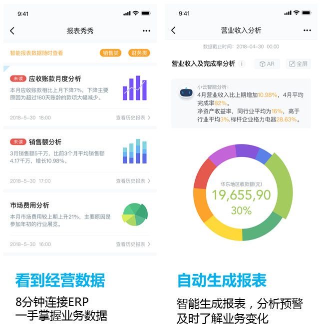 宋凱認(rèn)為,每個(gè)人都擁有數(shù)據(jù)權(quán)利,只有獲得與自己相關(guān)的經(jīng)營信息,才能喚醒數(shù)據(jù)價(jià)值。云之家V10推出的“報(bào)表秀秀”,可在8分鐘內(nèi)連接ERP,對不同角色提供分權(quán)限管理。企業(yè)可定制報(bào)表供員工訂閱,通過智能助理“小云”喚起數(shù)據(jù)隨時(shí)查看。