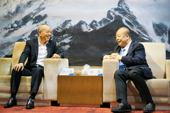 金蝶集團(tuán)創(chuàng)始人、董事會(huì)主席徐少春與花樣年集團(tuán)董事局主席潘軍交流。