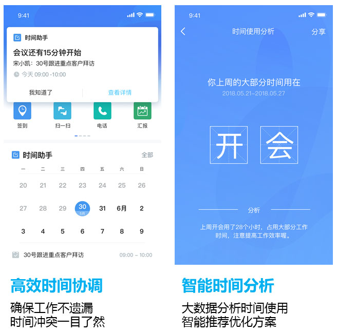 云之家產(chǎn)品總監(jiān)宋凱表示,“時(shí)間去哪了”一直是每個(gè)工作者的大焦慮。云之家V10推出“時(shí)間助手”應(yīng)用,可記錄管理個(gè)人日程并自動(dòng)提醒;通過日程共享,可實(shí)現(xiàn)團(tuán)隊(duì)成員時(shí)間安排的透明化;通過主動(dòng)“搶占”領(lǐng)導(dǎo)和同事的時(shí)間,可提升整體協(xié)作效率。